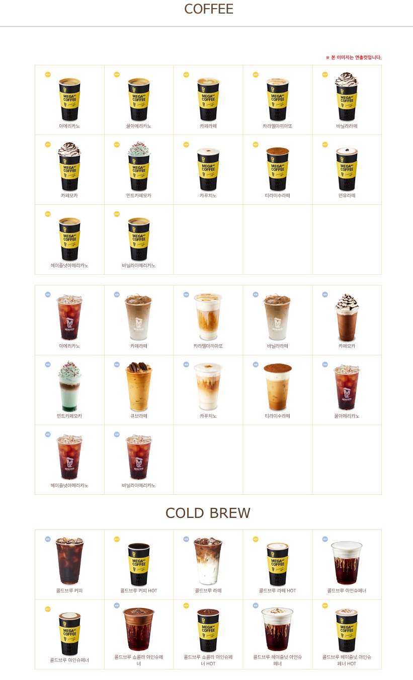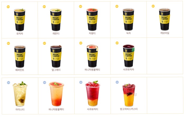 메가커피도 메뉴가 참 많다.