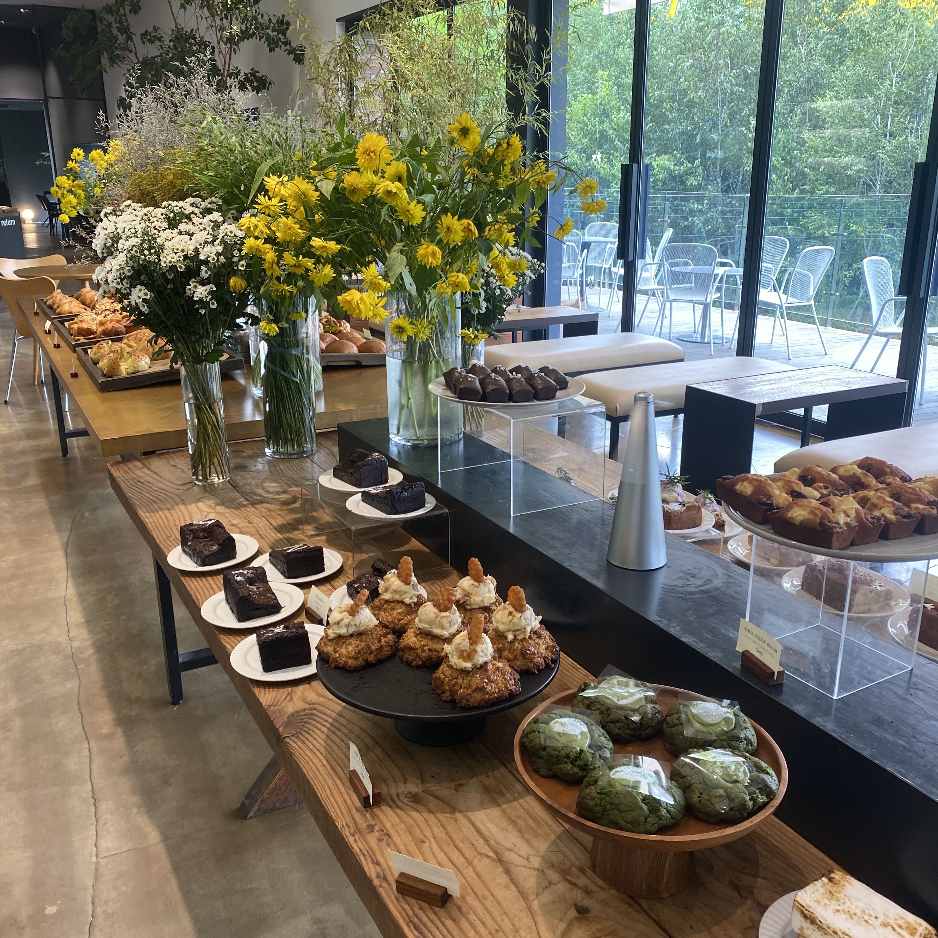 빵냄새도 빵냄새지만 생화가 곳곳에 진열되어 있어서